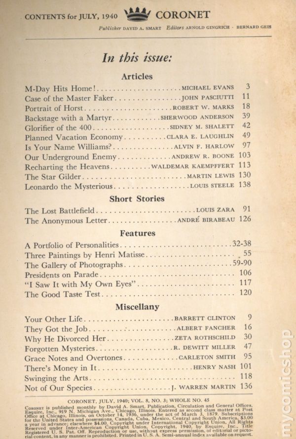 Esquire (1933 Esquire, Inc.) Magazine Vol. 14 #1Published Jul 1940 by Esquire Magazine.