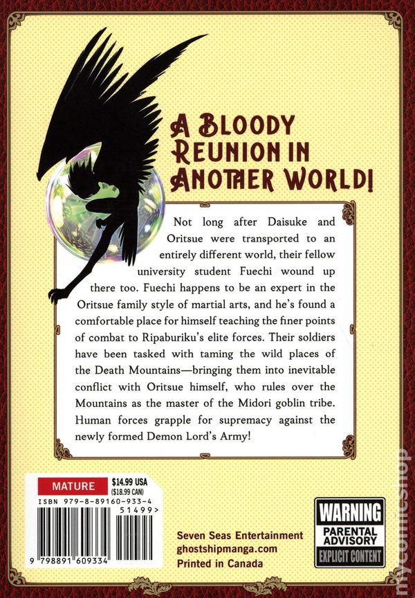 Volume 12 - 1st printing. Story and art by Kakeru. Translated by Michael O'Brian. Not long after Daisuke and Oritsue were transported to an entirely different world, their fellow university student Fuechi wound up there too. Fuechi happens to be an expert in the Oritsue family style of martial arts, and he's found a comfortable place for himself teaching the fine points of combat to Repuburiku's elite forces. Their soldiers have been tasked with taming the wild places of the Death Mountainsthem into inevitable conflict with Oritsue himself, who rules over the Mountains as the master of the Midori goblin tribe. Human forces grapple for supremacy against the newly-formed Demon Lord's Army! Softcover, 5-in. x 7-in., 176 pages, B&W. Mature Readers Cover price $14.99.