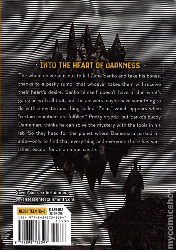 Volume 8 - 1st printing. Story and art by Q Hayashida. Translated by Daniel Komen. Zaha Sanko's body has great and terrible powers-they say that possessing his bones will grant you any wish, even the desire to become ruler of the universe. But Sanko is still a teenage dude with his own life, and he isn't about to let every monstrous lowlife in the galaxy rip him limb from limb. He and his skeletal buddy Avakian will use their dark powers to fend off any murder attempts while they search space for whomever put this curse on Sanko's bones... because killing them might end the madness. (And then Sanko can celebrate with his favorite spaghetti.) Softcover, 5-in. x 7 1/2-in., 222 pages, B&W. Mature Readers Cover price $13.99.