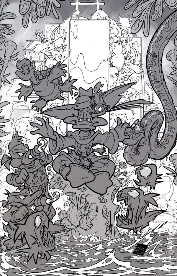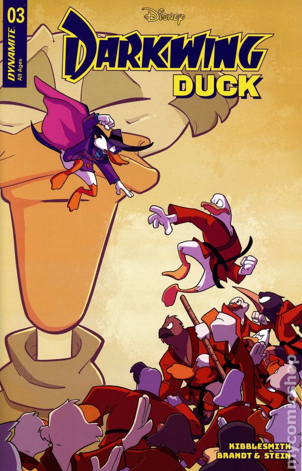 Written by Daniel Kibblesmith. Art and Cover by Ted Brandt, Ro Stein. CROUCHING GANDER, HIDDEN MALLARD! As a costumed crimefighter with years of experience safeguarding the streets of St. Canard, Darkwing Duck is, of course, a seasoned master of wing-to-wing combat. But how, exactly, did this avian avatar of justice become so proficient in the ways of the fist and (webbed) feet? For years the full story has been shrouded in mystery - until now! In this special Untold Tale of Darkwing Duck, readers will be transported back to DW's earliest days at the Training Temple of the Venerable One, where the Old Master imparted wisdom and takedowns in equal measure - and where a young Darkwing learned the value of patience, self-control, and standing up to bullies! Wizened calligrapher DANIEL KIBBLESMITH and Zen brush masters TED BRANDT & RO STEIN achieve perfect harmony in Darkwing Duck #3 - sealed with singular covers by BRANDT & STEIN, MARK BAGLEY, NICOLETTA BALDARI, CIRO CANGIALOSI, and original animated show creator TAD STONES! 32 pages, full color. Cover price $4.99.