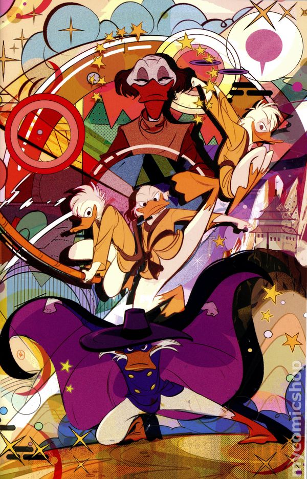Written by Daniel Kibblesmith. Art by Ted Brandt, Ro Stein. Cover by Ciro Cangialosi. CROUCHING GANDER, HIDDEN MALLARD! As a costumed crimefighter with years of experience safeguarding the streets of St. Canard, Darkwing Duck is, of course, a seasoned master of wing-to-wing combat. But how, exactly, did this avian avatar of justice become so proficient in the ways of the fist and (webbed) feet? For years the full story has been shrouded in mystery - until now! In this special Untold Tale of Darkwing Duck, readers will be transported back to DW's earliest days at the Training Temple of the Venerable One, where the Old Master imparted wisdom and takedowns in equal measure - and where a young Darkwing learned the value of patience, self-control, and standing up to bullies! Wizened calligrapher DANIEL KIBBLESMITH and Zen brush masters TED BRANDT & RO STEIN achieve perfect harmony in Darkwing Duck #3 - sealed with singular covers by BRANDT & STEIN, MARK BAGLEY, NICOLETTA BALDARI, CIRO CANGIALOSI, and original animated show creator TAD STONES! 32 pages, full color. Cover price $4.99.