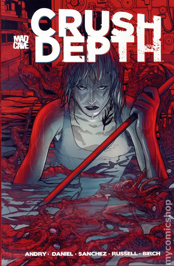 1st printing. Collects Crush Depth (2025 Mad Cave) #1-5. Written by David "DB" Andry and Tim Daniel. Art and Cover by Alex Sanchez. Two brothers locked in a sibling rivalry wrestle for command of a massive nuclear submarine, The Absolution. In a near-future irrevocably altered by climate change, Chief Science Officer Liana Pearson finds herself not only caught between the Wilder brothers, but drowning in her fear of the surface world. When something alien infiltrates The Absolution and upends the balance of power, Liana is left with only two deadly options—reaching the toxic surface world or steering the sub into the unforgiving abyss and crush depth. Breathe Deep! Softcover, 120 pages, full color. Teen+ Cover price $17.99.