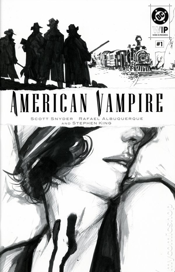 (W) Stephen King, Scott Snyder (A) Rafael Albuquerque (CA) Rafael Albuquerque DC'S ARTIST EDITION LINE CONTINUES! EXPERIENCE THE ORIGINAL ART OF DC'S GREATEST ISSUES AND ARTISTS AT ORIGINAL ARTBOARD SIZE! Step into the world of comics like never before with DC W.I.P. Get up close and personal with the stunning original artwork from one of comics greatest artists. Featuring the never-before-printed inked pages of American Vampire #1! The brilliance of Albuquerques work can be seen like never before in this massive oversize presentation. Dont miss your chance to own this incredible, one-of-a-kind piece of comics history. Featuring a brand-new introduction by Albuquerque. 40 pages, B/W, rated 17+ Cover price $14.99.