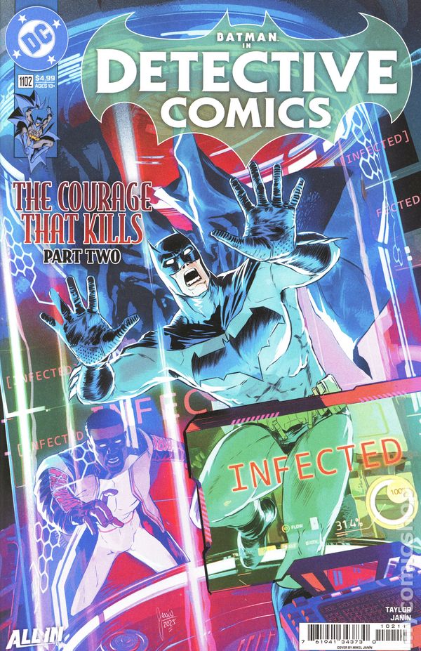 (W) Tom Taylor (A) Mikel Janin (CA) Mikel Janin BATMAN TEAMS UP WITH MR. TERRIFIC! A mysterious weaponized virus has infected the Dark Knight, and he does not know how long he has left before it takes control of his body and mind. Desperate for answers and unsure how long he has to get them, Batman turns to one of the most brilliant minds in the DC Universe, Mr. Terrific. The Courage That Kills continues in this cant-miss issue! 24 pages, full color, rated 13+. Cover price $4.99.