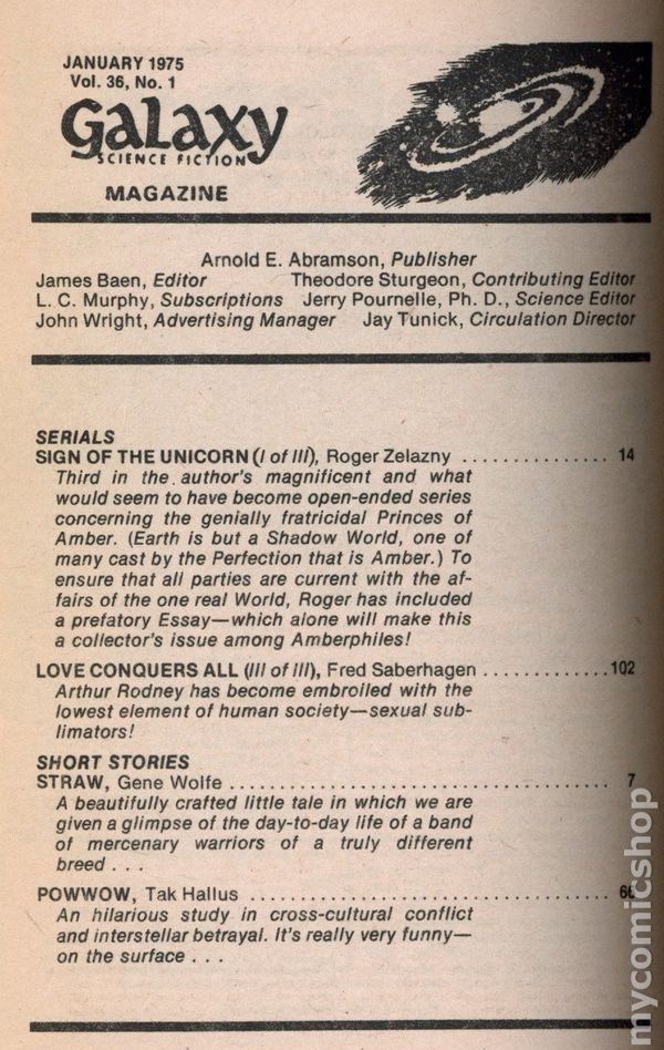 View scanUK Edition. Issue 25 - January 1975. Cover by Freff and Pini. Science Fiction Stories: "War of the Sign of the Unicorn" by Roger Zelazny, "Powwow" by Tak Hallus, "Straw" by Gene Wolfe, and many more. Softcover, 5" x 7.5", 160 pages, B&W.