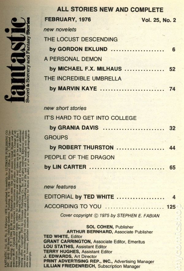 Fantastic (1952-1980 Ziff-Davis/Ultimate) Vol. 25 #2Published Feb 1976 by Ziff Davis.$2.50