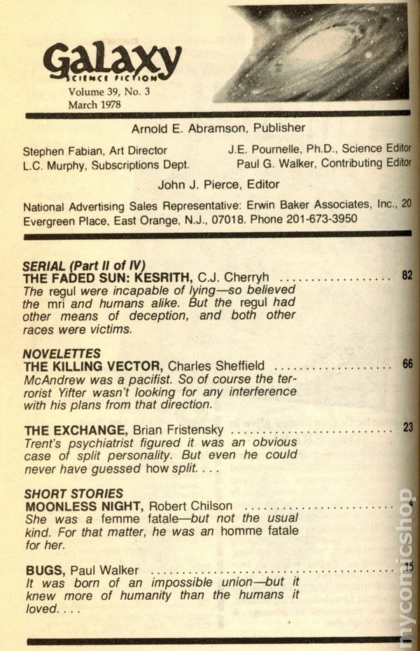 Cover by Anji Valenza. Science Fiction Stories by C. J. Cherryh, Charles Sheffield, Brian Fristensky, Robert Chilson, Paul Walker, William Walling. Illustrations by Bob Schaffer, Anji Valenza, Jim Mueller, Amy Harlib. Softcover Pulp Digest, 5-in x 7 1/2-in, 160 Pages, B&W. Cover price $1.25.