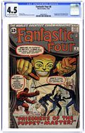 Cover pencils by Jack Kirby, inks by Dick Ayers. Dr. Doom and the Sub-Mariner team up (first Marvel villian team-up and second Silver Age Sub-Mariner appearance) in "Captives of the Deadly Duo!" Part 1, script by Stan Lee, pencils by Jack Kirby, inks by Dick Ayers; Doctor Doom presents himself to Sub-Mariner and offers him an alliance against the Fantastic Four and all mankind. When Super-Menaces Unite Part 2; Dr. Doom gives a "Grabber" to Sub-Mariner and Human Torch discovers that Invisible Girl hides a photo of the Sub-Mariner in a book. Part 3 When Friends Fall Out!; The Sub-Mariner plants the "Grabber" in the Baxter Building and it is lifted into space by Doctor Doom. Part 4 Trapped!; The Baxter Building is set on a collision course with the Sun and the Sub-Mariner discovers that Doctor Doom has betrayed him. Part 5 The End... or the Beginning?; Doctor Doom is flung out into space and the Baxter Building is returned to its foundation. First mention of "unstable molecules." 36 pgs. $0.12. Cover price $0.12.