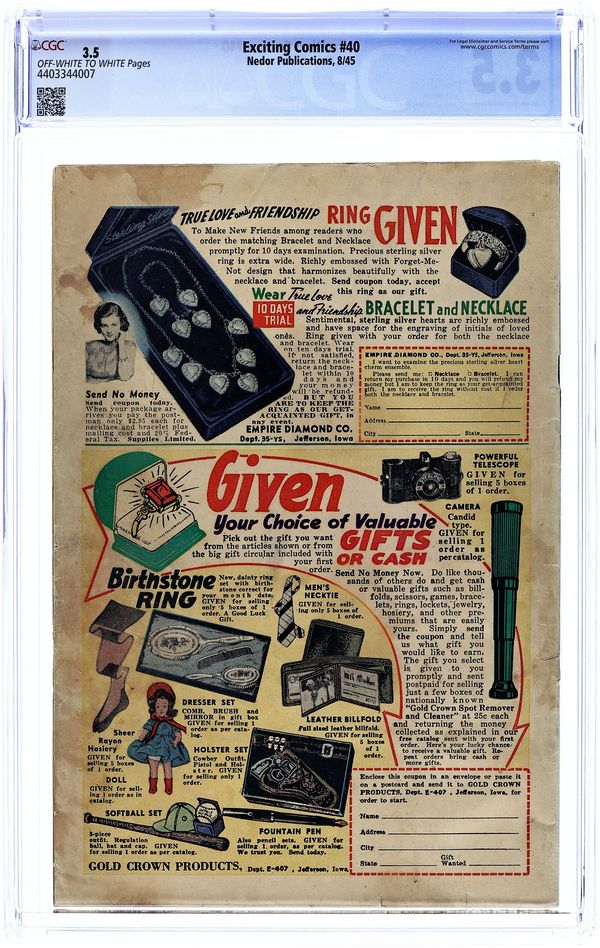 Published Aug 1945 by Nedor/Better Publications.$628.00- Paper: Off white to white