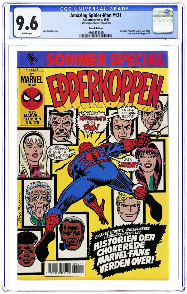 Danish Language Reprint. Reprints material from Amazing Spider-man #50, #51, and #52. Cover by John Romita. Danish Language.