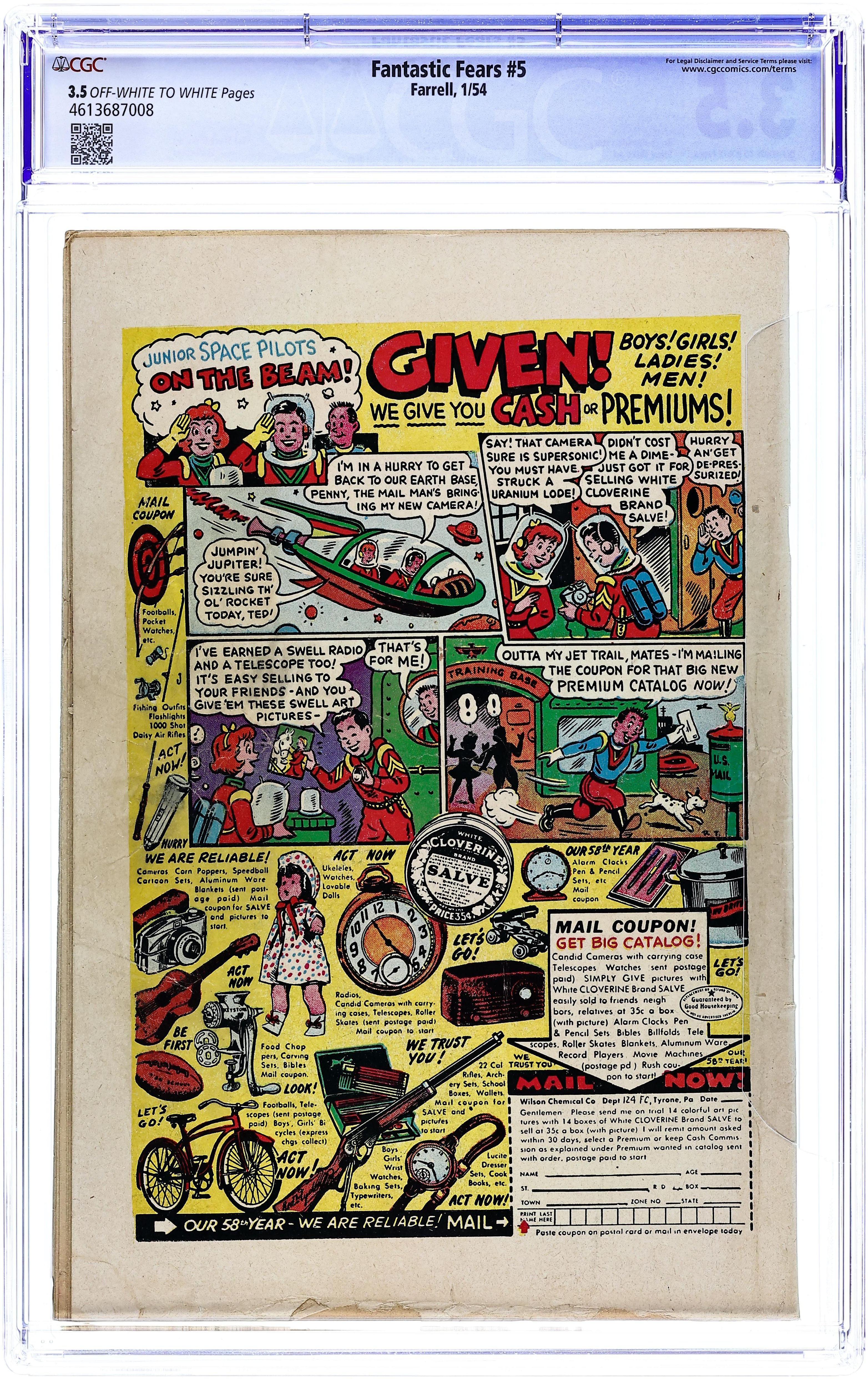 Stories and art by Robert Webb and others. Pre-Code tales of horror and the supernatural from Ajax-Farrell. A prehistoric egg is accidentally incubated by a museum, hatching an ancient monstrosity. In an unusual tale, a coffin narrates its own life story. A demonic fiddler creates chaos and conflict with his music. Dragon Egg!; Inhuman Killer; I, the Coffin; Deadly Shadows; Demon Fiddler. 36 pages, Full Color. Cover price $0.10.