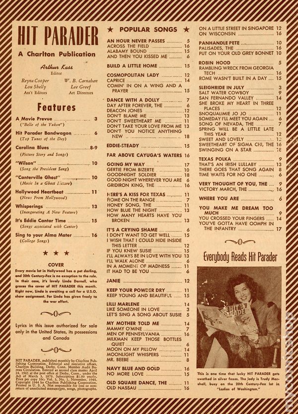 Hit Parader (1942 Charlton) Magazine Nov 1944Published Nov 1944 by Charlton Publishing.