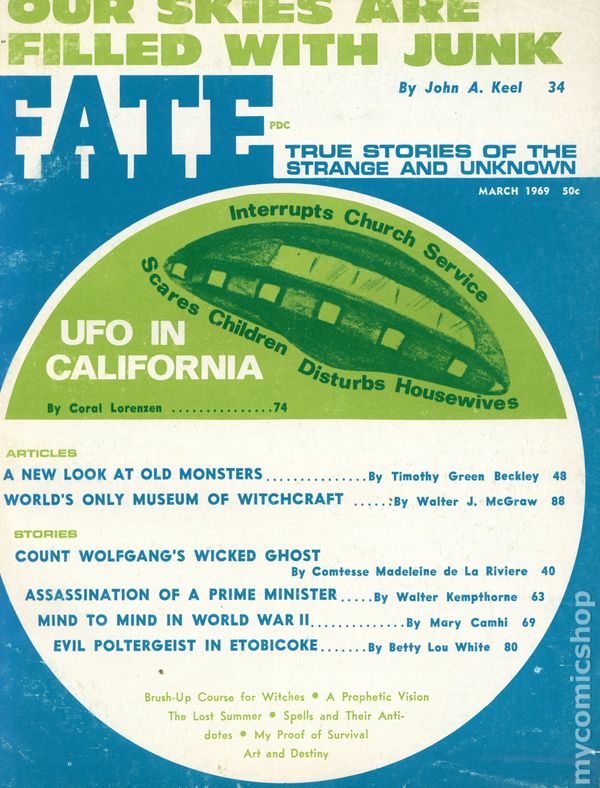 Volume 22 - Number 3, March 1969. Pulp magazine devoted to exploring the paranormal. Articles and Stories include a New Look at Old Monsters, The World's Only Museum of Witchcraft, Count Wolfgang's Wicked Ghost, and Assassination of a Prime Minister! Softcover, 5 1/2-in. x 7 1/2-in., 130 page, Text (with B&W Illustrations and Photos). Cover price $0.50.