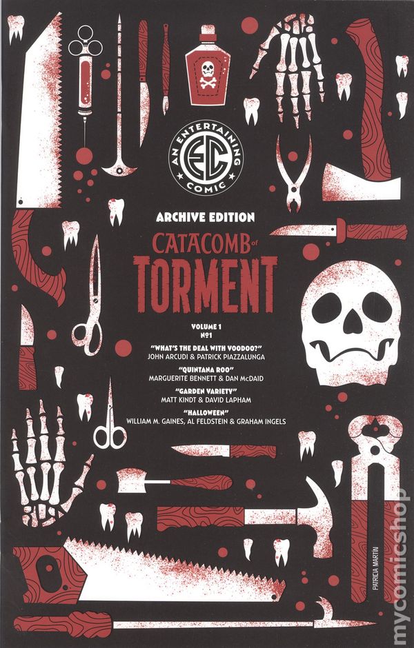Limited 1 for 50 Retailer Incentive Variant Cover. Written by John Acrudi, Marguerite Bennett, Matt Kindt, Various. Art by Patrick Piazzalunga, David Lapham, Dan McDaid, VARIOUS. Cover by Patricia Martin. BEHOLD: A BLOODY NEW ONGOING SERIES! Out of the ashes of EPITAPHS FROM THE ABYSS, we usher THE TORMENTOR—a new horror host with an unhealthy interest in human anatomy—into the shadow-strewn halls of EC Comics history for our next monthly horror anthology! Hold onto your head (if its still attached) . . . because no one escapes THE CATACOMB OF TORMENT! For Her Royal Travesty of Pain's first request: Master storytellers John Arcudi (B.P.R.D.) & Tonci Zonjic (Black Hammer: Skulldigger & Skeleton Boy), Matt Kindt (BRZRKR) & David Lapham (Stray Bullets), and Marguerite Bennett (Batwoman) & Dan McDaid (Shazam!) each take turns manning the rack and turning the red-hot irons for three all-new and blisteringly brutal tales of mayhem and malice in the undying EC tradition! Plus, as an added bonus: A surprise classic from the EC vaults, painstakingly remastered and newly restored to its original coloring. The critics are already saying, This is literal torture and Please make it stop! Pick up this fearful 40-PAGE FIRST ISSUE—and the Tormentor might just consider letting them go! 40 pages, full color. Rated T+ Cover price $4.99.