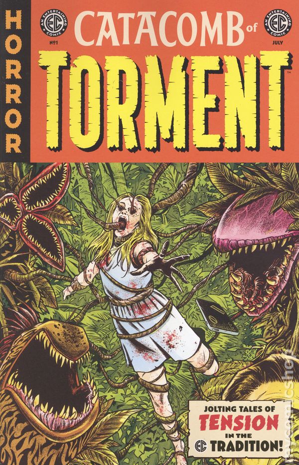 Written by John Acrudi, Marguerite Bennett, Matt Kindt, Various. Art by Patrick Piazzalunga, David Lapham, Dan McDaid, VARIOUS. Cover by Jorge Fornes. BEHOLD: A BLOODY NEW ONGOING SERIES! Out of the ashes of EPITAPHS FROM THE ABYSS, we usher THE TORMENTOR—a new horror host with an unhealthy interest in human anatomy—into the shadow-strewn halls of EC Comics history for our next monthly horror anthology! Hold onto your head (if its still attached) . . . because no one escapes THE CATACOMB OF TORMENT! For Her Royal Travesty of Pain's first request: Master storytellers John Arcudi (B.P.R.D.) & Tonci Zonjic (Black Hammer: Skulldigger & Skeleton Boy), Matt Kindt (BRZRKR) & David Lapham (Stray Bullets), and Marguerite Bennett (Batwoman) & Dan McDaid (Shazam!) each take turns manning the rack and turning the red-hot irons for three all-new and blisteringly brutal tales of mayhem and malice in the undying EC tradition! Plus, as an added bonus: A surprise classic from the EC vaults, painstakingly remastered and newly restored to its original coloring. The critics are already saying, This is literal torture and Please make it stop! Pick up this fearful 40-PAGE FIRST ISSUE—and the Tormentor might just consider letting them go! 40 pages, full color. Rated T+ Cover price $4.99.