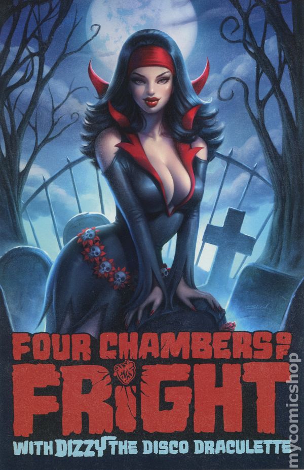 Atlas Comics Signature Series Cover by Dave Acosta. Written by David Avallone. Art by Juan Samu. The two titans of horror and comedy unite in comics for the very first time! Dynamite Entertainment Proudly Presents… Elvira Meets Vincent Price! Elvira is back, with her most historic AND greatest costar ever! The ghost of Vincent Price is a spirit with a mission, and only the Mistress of the Dark can help! The Apocalypse is coming, and it's going to be live-streamed for binge-watching, but a long-lost movie can save the world… if only the movie star specter and the horror hostess with the mostest can find it in time! Thrills, chills, and all sorts of terrible puns! 32 pages, full color. Rated T+ Cover price $49.99.