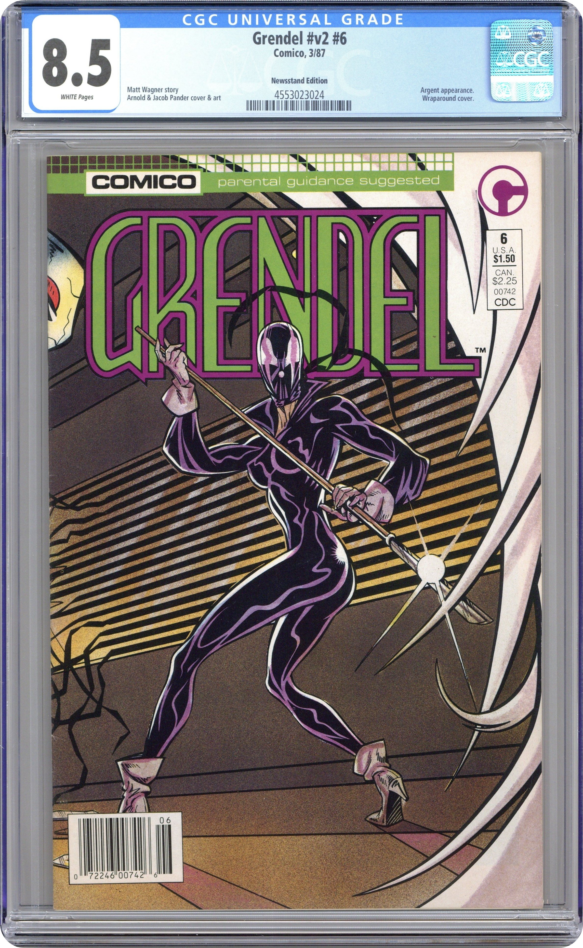 Direct Edition. Wraparound cover. Script by Matt Wagner and art by Arnold Pander, Jacob Pander and Jay Geldhof. Christine returns to New York and discovers that Argent and the police are waiting for her in "After the Devil." Cover price $1.50.