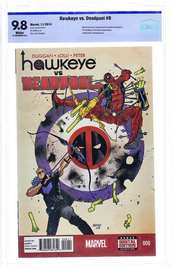 Written by Gerry Duggan. Art by Matteo Lolli. Cover by James Harren. Once upon a time, champions emerged to fight evil plaguing humanity. They fought for salvation, for all that is good in the world -- and they won. They were kind, generous and self-sacrificing. They were heroes. These are not those heroes. Meet Hawkeye: Ladies man ('ladies man' because the ladies love to hate this man), crossbow crusader and, most importantly, Avenger. He's the only guy on the team without any powers, though, so cut him a little slack. Then there's Deadpool (MR. Deadpool to you, skippy) -- the regeneratin' degenerate. You can shoot him, stab him, and make with the punchy-punchy right in his face, but nothing can keep the Merc with a Mouth down. What do they have in common? Halloween and a S.H.I.E.L.D. espionage mystery that has the both heroes racing against the clock while outshining one another. It's a Hawkeye & Deadpool comic 75 years in the making, give or take 75 years. 36 pages, full color. Rated T Cover price $4.99.