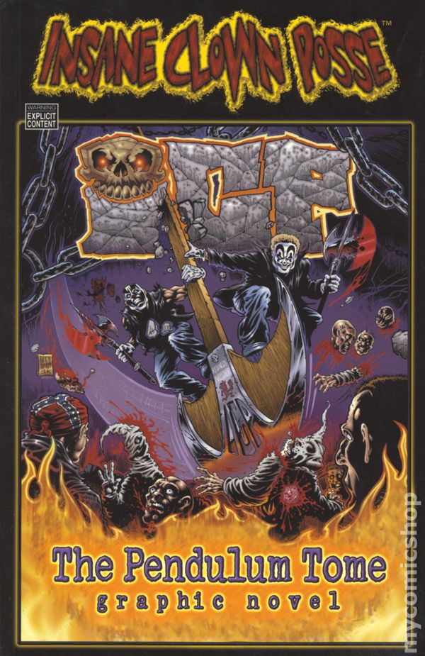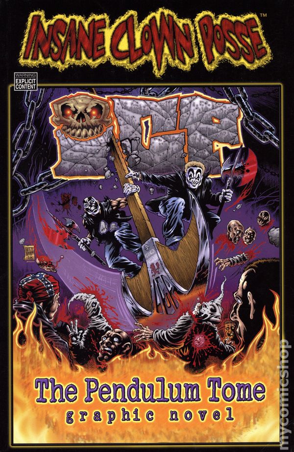 1st printing - Does NOT include Bonus CD. Collects Insane Clown Posse (1999) #3, Insane Clown Posse The Pendulum (2000 Chaos) 1-12, and Insane Clown Posse Hallowicked (2001 Chaos) #1. Written by Jesse McCann and Jumpsteady. Art by Jerry Beck, Gerardo Sandoval, and Sandu Florea. Join the Prophets of the Dark Carnival, Violent J, and Shaggy 2 Dope, The Insane Clown Posse, in fighting the demonic forces of the vile Killnor! The Pendulum Tome tells the entire story of the forces of the Dark Carnival strive to bring justice to the deserving, facing many unearthly foes, demonic rappers, inbred rednecks, and crooked cops along the way! Softcover, 450 pages, full color. MATURE READERS. Cover price $34.99.