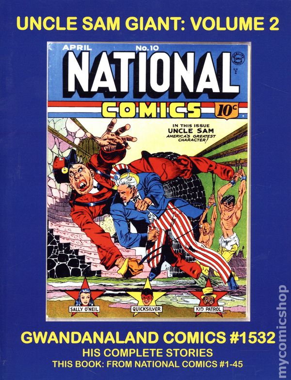Volume 1532 - 1st Printing. "Uncle Sam Reader's Giant: Volume 2!" Collects material from National Comics (1940) #1-45. These budget friendly reprints of classic western sci-fi, horror, and adventure comics feature some of the best in public domain comic book reprints. Softcover, 8 1/2-in. x 11-in., 520 pages, B&W.