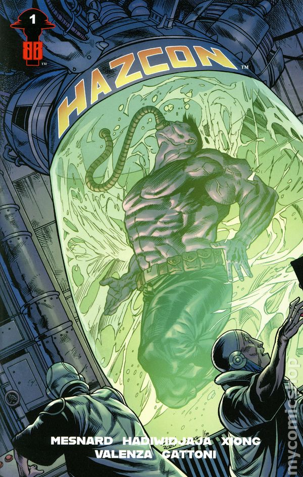 (W) Kenney Mesnard (A) Donny Hadiwidjaja, Ka Xiong, Bryan Valenza (CA) Donny Hadiwidjaja, Ka Xiong, Ifansya Noor Debut issue of the brand-new Sci-fi Superhero adventure series, HAZCON. Bodi Bacca volunteers for a suicide mission to take the fight to a nefarious warring alien society, but all isn't what he was told. Following several wars with an alien race, the convening leadership decided to be proactive and with the assistance of captured alien tech they were able to make humans into living weapons. HAZCON is such a weapon. 24 pages, full color, not rated. Cover price $3.99.