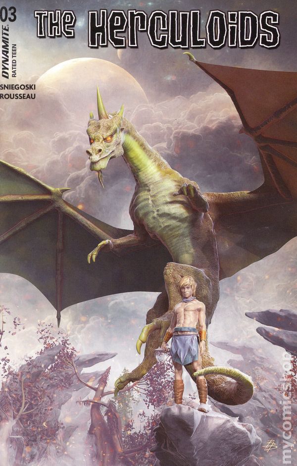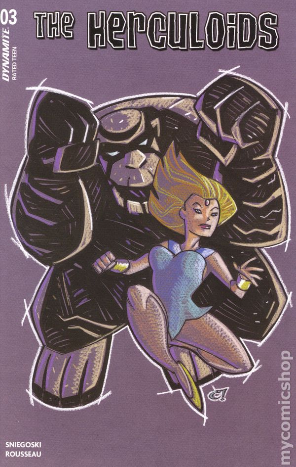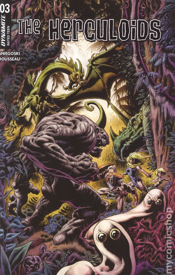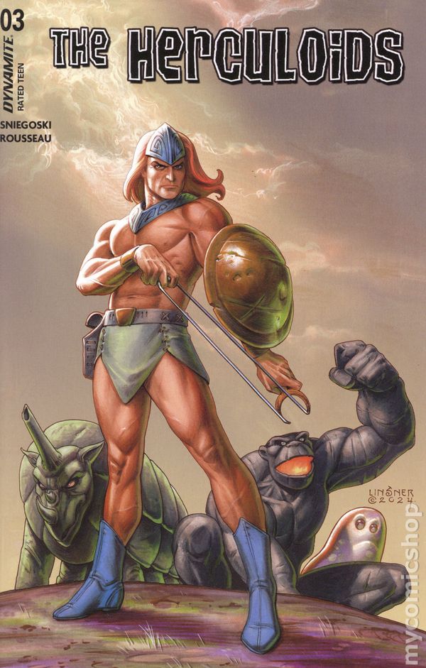 Written by Tom Sniegoski. Art by Craig Rousseau. Cover by Joseph Michael Linsner. In the tradition of the recently released, critically acclaimed -AND Best-Selling - Space Ghost series, Dynamite proudly presents - The Herculoids! This issue: Beware the Mole-Men! The Herculoids must stop the Mole People's relentless attack any way that they can, even if it means ending the lives of all the subterranean beings! 32 pages, full color. Rated T Cover price $4.99.