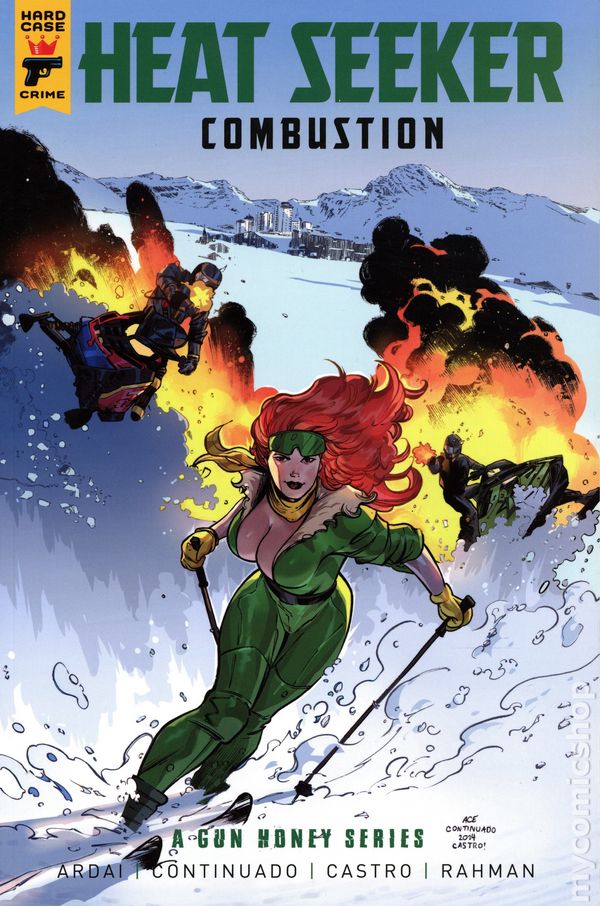 Volume 2 - 1st printing. "Combustion!" Collects Heat Seeker: Combustion - A Gun Honey Series (2024 Titan) #1-4. Written by Charles Ardai. Art and cover by Ace Continuado and Juan Castro. FIERY HEROINE DAHLIA RACERS RETURNS IN THE HIGHLY DEMANDED SEQUEL TO THE ACCLAIMED GUN HONEY COMICS SPIN-OFF THAT FANS OF CRIME NOIR AND PULP FICTION WILL LOVE! The incredible creative team of the first graphic novel returns, written by award-winning co-founder of Hard Case Crime Charles Ardai, with slick and sultry art by Ace Continuado. Softcover, 112 pages, full color. Mature Readers Cover price $17.99.