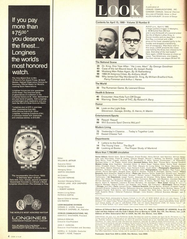 Look (1937-1971 Cowles Media) Magazine Vol. 33 #8Published Apr 1969 by Look, Inc./Cowles Magazines.