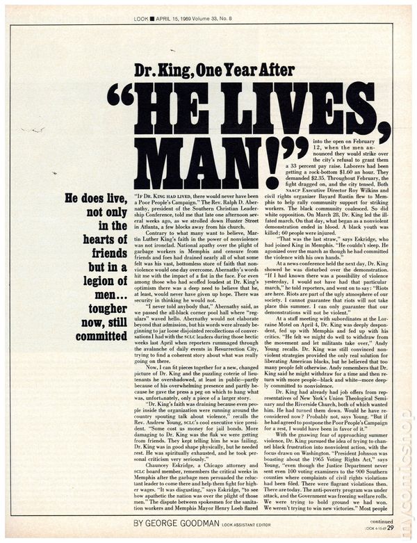 Vol. 33, No. 8 - April 15, 1969. Biweekly, general-interest photojournalism magazine. 10.5" x 13", 116 pages, PC/PB&W. Cover price $0.50.