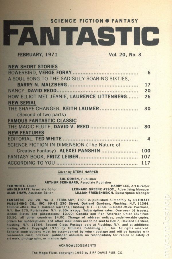 Fantastic (1952-1980 Ziff-Davis/Ultimate) Vol. 20 #3Published Feb 1971 by Ziff Davis.