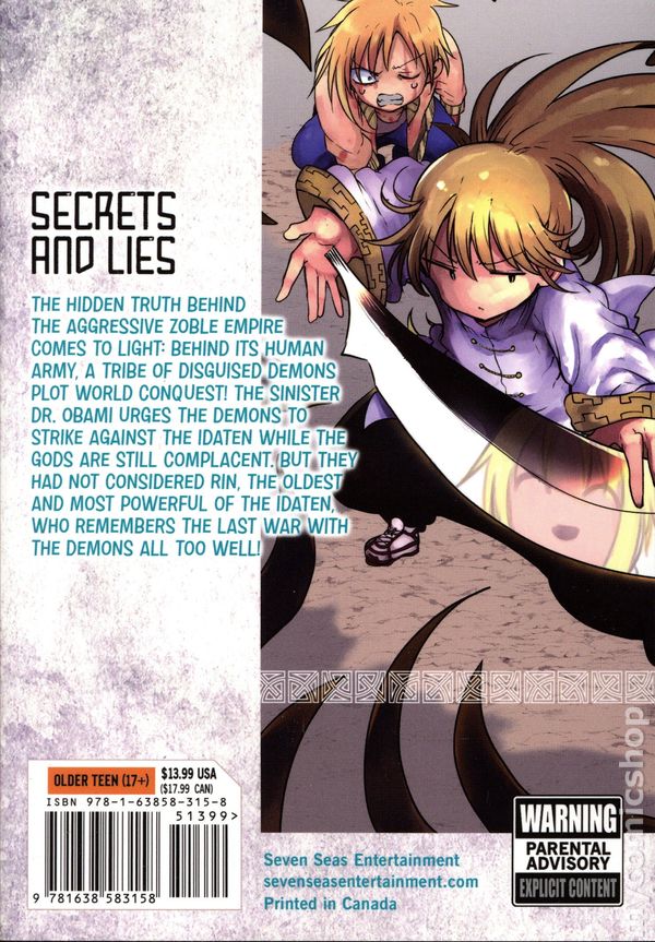 Volume 2 - 1st Printing. Written by Amahara. Art and cover by "coolyousinnjya". The hidden truth behind the aggressive Zoble Empire comes to light: behind its human army, a tribe of disguised demons plot world conquest! The sinister Dr. Obami urges the demons to strike against the Idaten while the gods are still complacent. But they had not considered Rin, the oldest and most powerful of the Idaten, who remembers the last war with the demons all too well! Softcover, 5-in. x 7-in., 168 pages, B&W. MATURE READERS Cover price $13.99.
