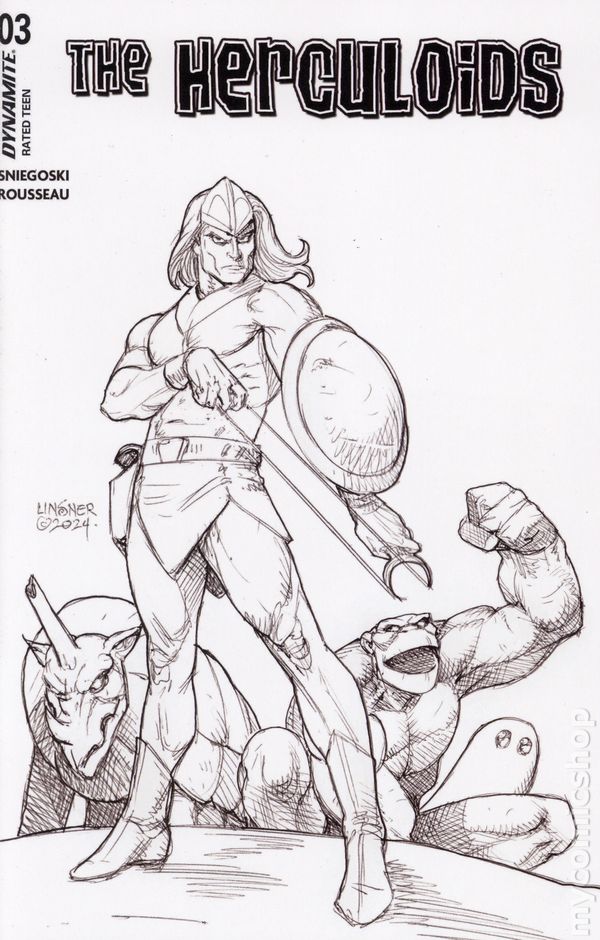 Limited 1 for 15 Retailer Incentive Variant Cover. Written by Tom Sniegoski. Art by Craig Rousseau. Cover by Joseph Michael Linsner. GAZE THROUGH THE EYES OF THE DRAGON! In this issue: After seeing the whole Herculoids team in action against the Mole People, it's time to zoom in on some of its more uncanny members - and first up is Zok, the laser-ray dragon! Get ready for a special POV journey into Zok's inner world as well as across the wilds of Planet Amzot, where his present life with his strange adopted family sparks hints of a dimly-remembered past that seems like a dream - or possibly a nightmare! The laser-focused creative energies of author TOM SNIEGOSKI and artist CRAIG ROUSSEAU illuminate new realms in The Herculoids #4 - featuring freshly charted covers by FRANCESCO MATTINA, JOSEPH MICHAEL LINSNER, BJORN BARENDS, and FELIPE MASSAFERA! 32 pages, full color. Rated T Cover price $4.99.