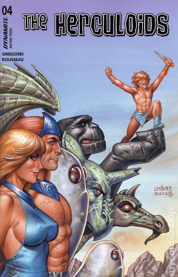 Limited 1 for 20 Retailer Incentive Variant Cover. Written by Tom Sniegoski. Art by Craig Rousseau. Cover by Joseph Michael Linsner. GAZE THROUGH THE EYES OF THE DRAGON! In this issue: After seeing the whole Herculoids team in action against the Mole People, it's time to zoom in on some of its more uncanny members - and first up is Zok, the laser-ray dragon! Get ready for a special POV journey into Zok's inner world as well as across the wilds of Planet Amzot, where his present life with his strange adopted family sparks hints of a dimly-remembered past that seems like a dream - or possibly a nightmare! The laser-focused creative energies of author TOM SNIEGOSKI and artist CRAIG ROUSSEAU illuminate new realms in The Herculoids #4 - featuring freshly charted covers by FRANCESCO MATTINA, JOSEPH MICHAEL LINSNER, BJORN BARENDS, and FELIPE MASSAFERA! 32 pages, full color. Rated T Cover price $4.99.
