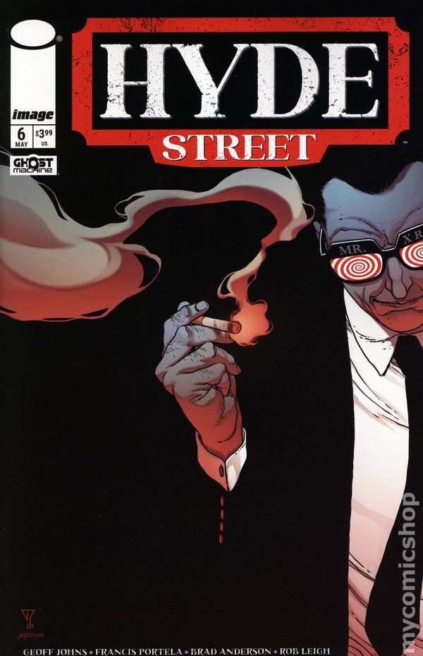 Written by Geoff Johns. Art and Cover by Francis Portela, Brad Anderson. The manipulative Mr. X-Ray wants OUT of Hyde Street, pronto. The closer he gets to snatching 10,000 souls, the nearer his freedom. And he wants to up the count in a big way: by capturing an entire theater full of poor saps who have found their way onto Hyde Street. But will one good soul ruin it all? 32 pages, full color. Rated T+ Cover price $3.99.