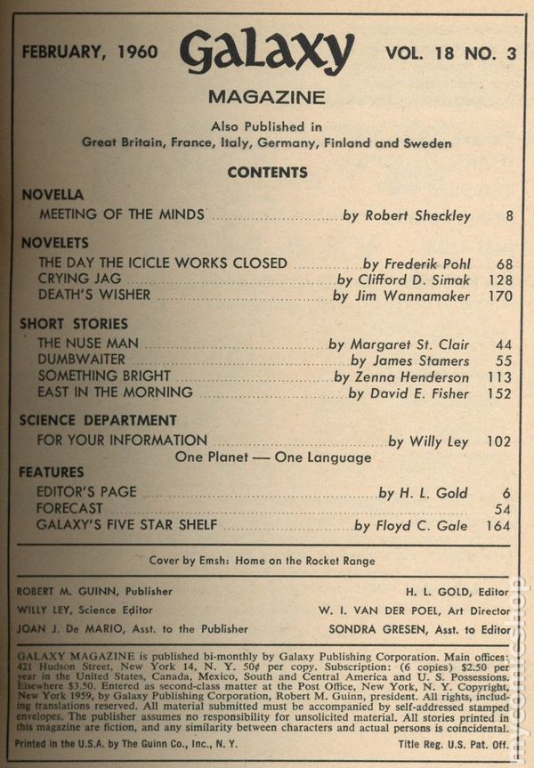 Published Feb 1960 by Galaxy Publications.