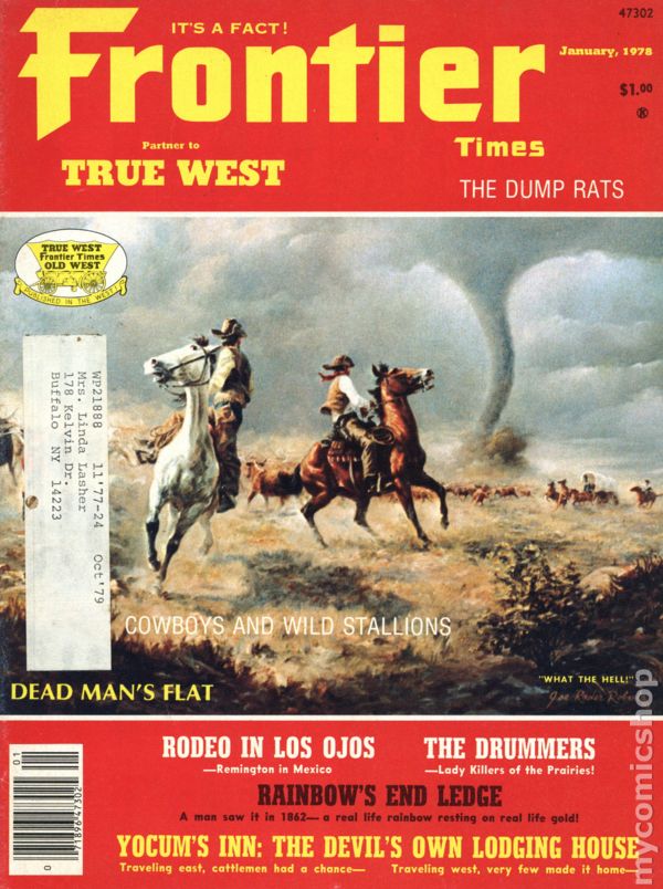 Magazine of true stories of the American Frontier. Features illustrations and photos of the old west. B&W text. Color cover. 8 1/2-in. x 11-in. 64 pages. Cover price $1.00.