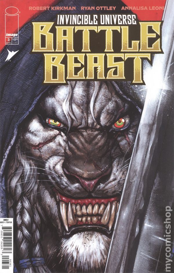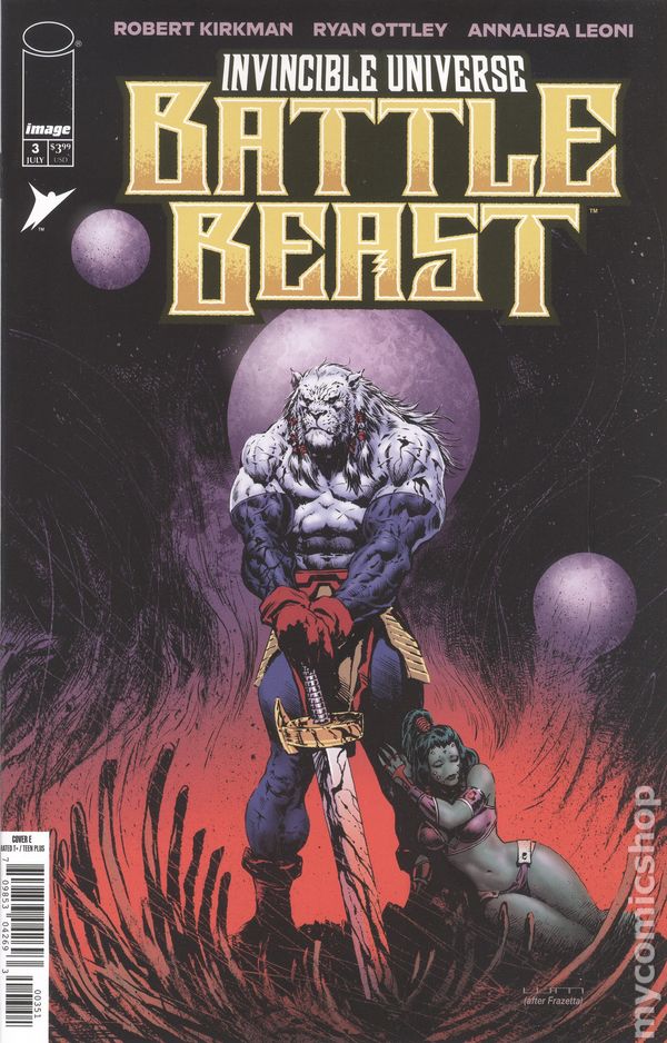Limited 1 for 100 Retailer Incentive Variant Cover. Written by Robert Kirkman. Art by Ryan Ottley, Annalisa Leoni. Cover by Simon Bisley. Who would dare betray Battle Beast? 24 pages, full color. Rated T+ Cover price $3.99.