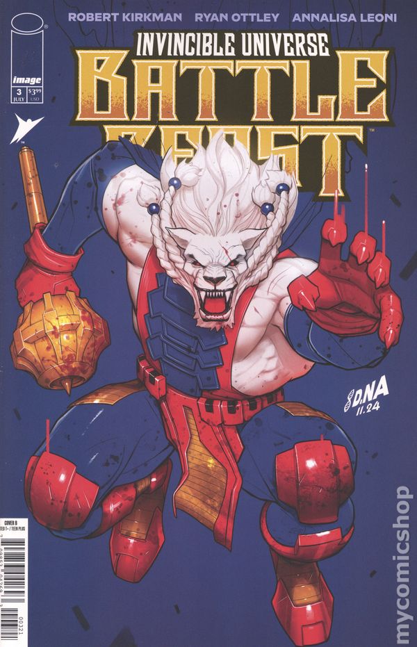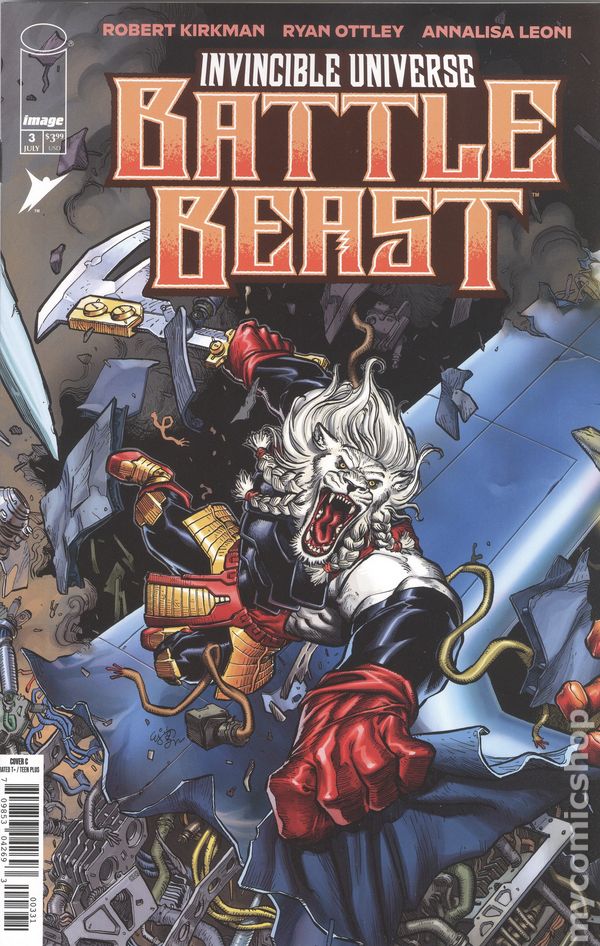 Written by Robert Kirkman. Art by Ryan Ottley, Annalisa Leoni. Cover by Ryan Ottley, Annalisa Leoni. Who would dare betray Battle Beast? 24 pages, full color. Rated T+ Cover price $3.99.