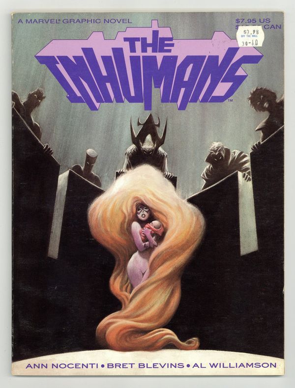 1st printing. Written by Ann Nocenti. Art by Bret Blevins and Al Williamson. The Royal Family is expecting an heir. But what tragic sacrifice will Black Bolt and Medusa have to make in order to save the life of their unborn child. And, what does the Black Bolt's sinister brother, Maximus, have planned for the child? Softcover, 8-in. x 11-in., 64 pages, full color. Cover price $7.95.