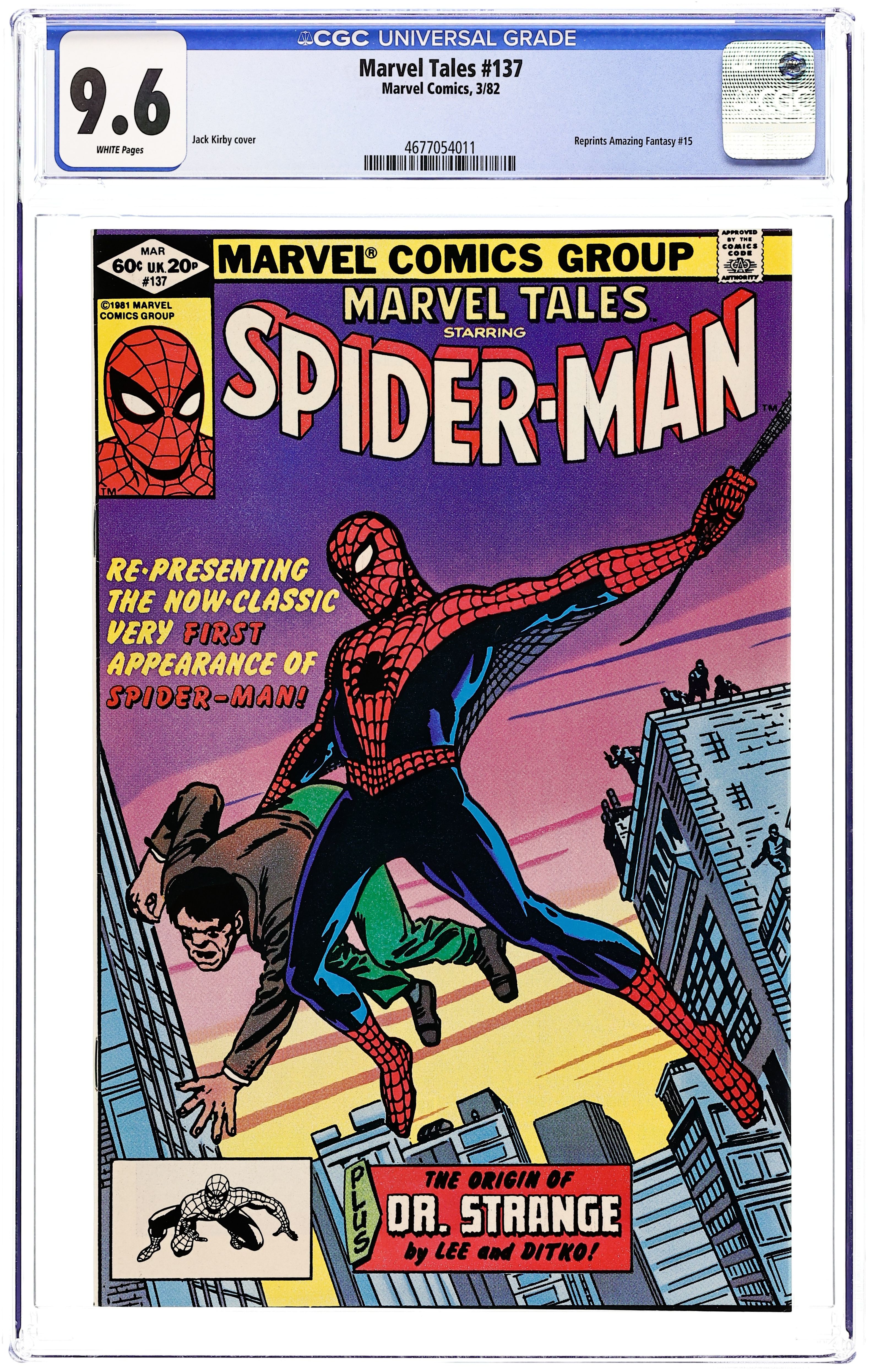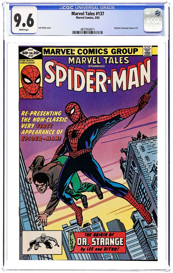 Direct Edition. Cover pencils by Jack Kirby, inks by Steve Ditko. Spider-Man!, script by Stan Lee, art by Steve Ditko; reprinted from Amazing Fantasy (Marvel, 1962 series) #15; Peter Parker gets bitten by a radioactive spider and becomes Spider-Man. Unused cover for Amazing Fantasy #15, first time in color, art by Ditko. The Origin of Dr. Strange, script by Stan Lee, art by Steve Ditko; reprinted from Strange Tales (Marvel, 1951 series) #115. Dr. Strange pinup by Steve Ditko. Peter Parker as.. Spider-Man pinup by Ditko. 36 pgs. $0.50. Cover price $0.60.