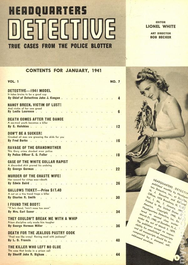 Vol. 1, #11, Jan. 1941 - Stories titled "She Dared Me to Murder Her" and "He Couldn't Marry Her Dead!" give an idea of the rationale behind this magazine. Some pages printed in a single color, others in standard black on white. Many period photos also included to illustrate the stories. Large 10.75" x 13.75", 52 pages, B&W. Cover price $0.15.