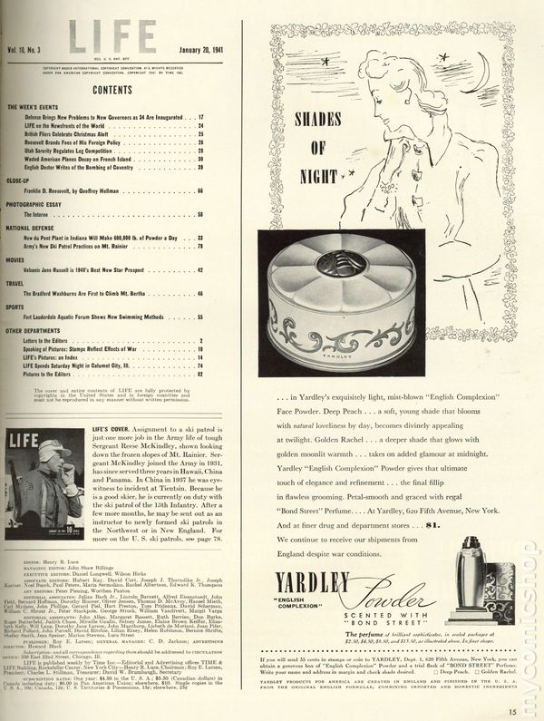 January 20, 1941. Classic weekly news/photo magazine. 10.5-in. x 13.75-in.; partial color; 88 pages. Cover price $0.10.