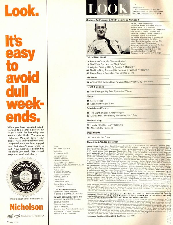 Look (1937-1971 Cowles Media) Magazine Vol. 32 #3Published Feb 1968 by Look, Inc./Cowles Magazines.$18.00