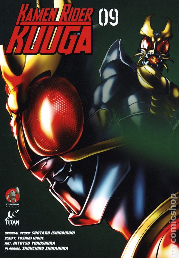 Volume 9 - 1st printing. Written by Shotaro Ishinomori and Toshiki Inoue. Art and cover by Hitotsu Yokoshima. Translated by Jonathan Clements and Motoko Tamauro. FEATURING THE APPEARANCE OF THE LEGENDARY KAMEN RIDER AGITO! The world has gone mad - a Gurongi has become a turncoat, fighting alongside Kuuga, while Agito's power spirals out of control! The battles Kuuga has faced have always been simple: stop the Unknown Life Forms from continuing their murderous game. But now one Gurongi rejects their Gegeru, coming to fight alongside Kuuga instead. Can Godai trust this new ally, or will their beastly nature reveal itself? Softcover, 5-in. x 7-in., 224 pages, B&W. Mature Readers Cover price $12.99.