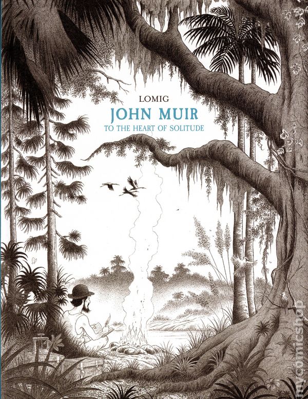 1st printing. Story and art by Lomig. Translated by Christopher Pope. What pushed John Muir to become the pioneering environmentalist and founder of the Sierra Club? 1867: A sawmill is running at full speed with a terrible noise when suddenly, workers run to rescue a man on the ground. He has seriously injured his eyes. John Muir is twenty-nine years old and has to be confined in a dark room: it is likely that he may remain blind. But miraculously, after months of an almost mystical convalescence, he regains his sight. This episode convinces him he's going to leave everything behind and embrace his lifelong dream: head south to meet the wilderness. Armed with only his courage, his youth, a magnifying glass and a botanical book, he treks hundreds of miles on foot from Indiana to Florida. Imagine an almost pristine wilderness, where only a few dangerous ex-soldiers from the South and former slaves thrown out of the old plantations roam… This biography also covers his other life-changing pioneering trek along the Sierra Nevada Trail which now bears his name. Here, in breathtaking vistas, is the inspiration he got to found the Sierra Club, create the first national parks, and become one of Americas first and foremost environmentalist champions. Exquisitely rendered in a sepia tone. Hardcover, 8 1/2-in. x 11-in., 176 pages, B&W. Cover price $24.99.