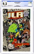 Newsstand Edition. When terrorists take the U.N. General Assembly hostage, Doctor Light (Kimiyo Hoshi) calls on the newly formed Justice League for help in "Born Again". Plot and breakdowns by Keith Giffen, script by Giffen and J.M. DeMatteis, pencils by Kevin Maguire, inks by Terry Austin. Batman, Guy Gardner, Black Canary, Mr. Miracle, Oberon, Captain Marvel, Martian Manhunter, Blue Beetle, Dr. Fate, Maxwell Lord. Maguire/Austin cover. Cover price $0.75.