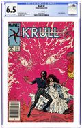 Newsstand Edition. Marvel Comics' official comic adaptation of the 1983 movie "Krull." In this issue, Colwyn and his brave group continue on their quest to rescue the princess Lyssa and they find many threats and obstacles in their way including the problem of how to find the location of the Black Fortress, where the princess is imprisoned in part two of this adaptation. Script by David Michelinie and art by Bret Blevins & Vince Colletta. Cover price $0.60.