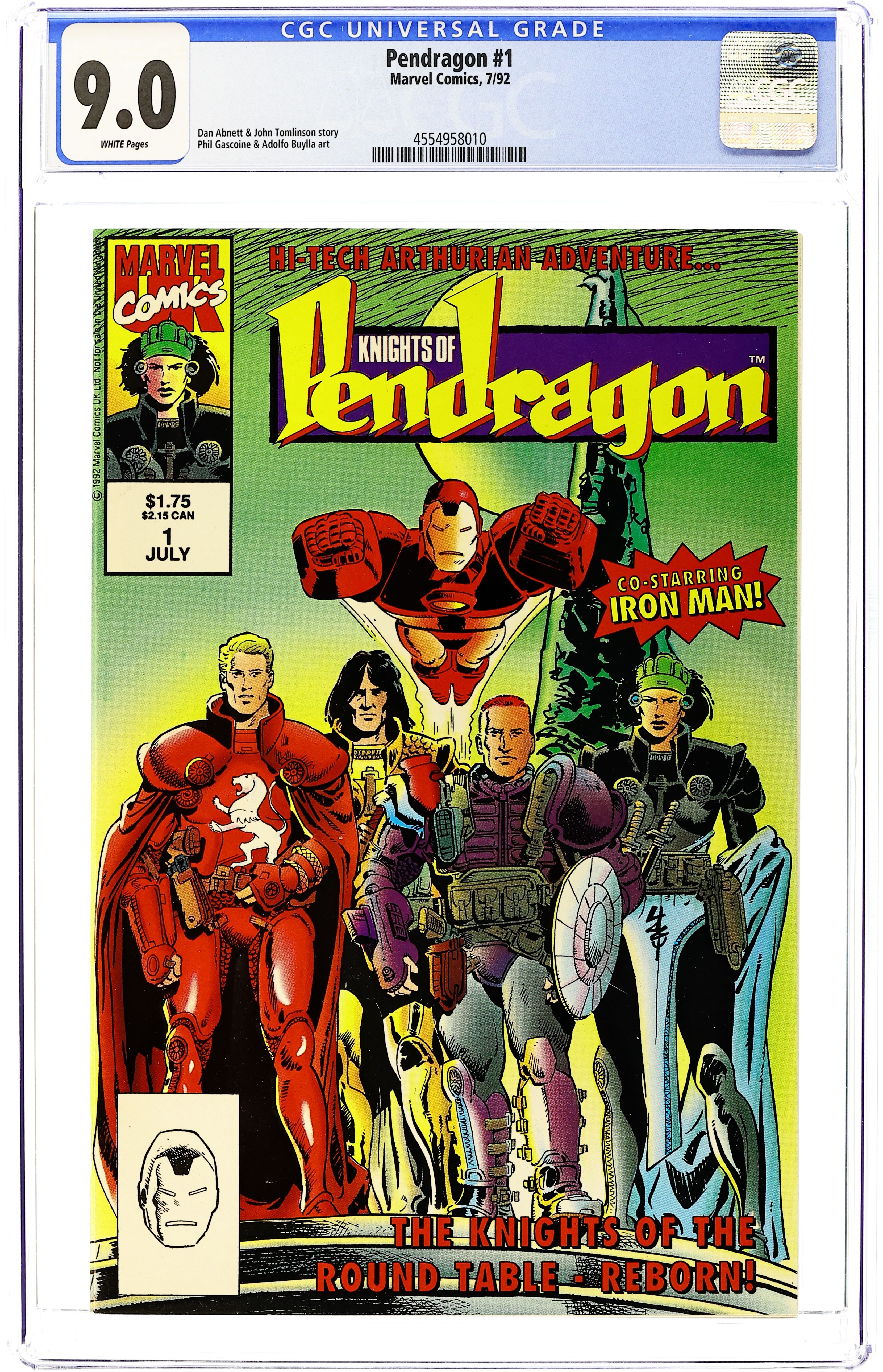 "Quest World!," script by Dan Abnett and John Tomlinson, pencils by Phil Gascoine, inks by Adolfo Buylla; Mys-Tech's dimension hopping mercenaries have discovered Avalon and the Pendragons; Mys-Tech wants their power; On our Earth, Union Jack is caught up in a robot rebellion at Tony Stark's theme park, Quest World. 36 pgs., full color. 36 pgs., full color. $1.75. Cover price $1.75.