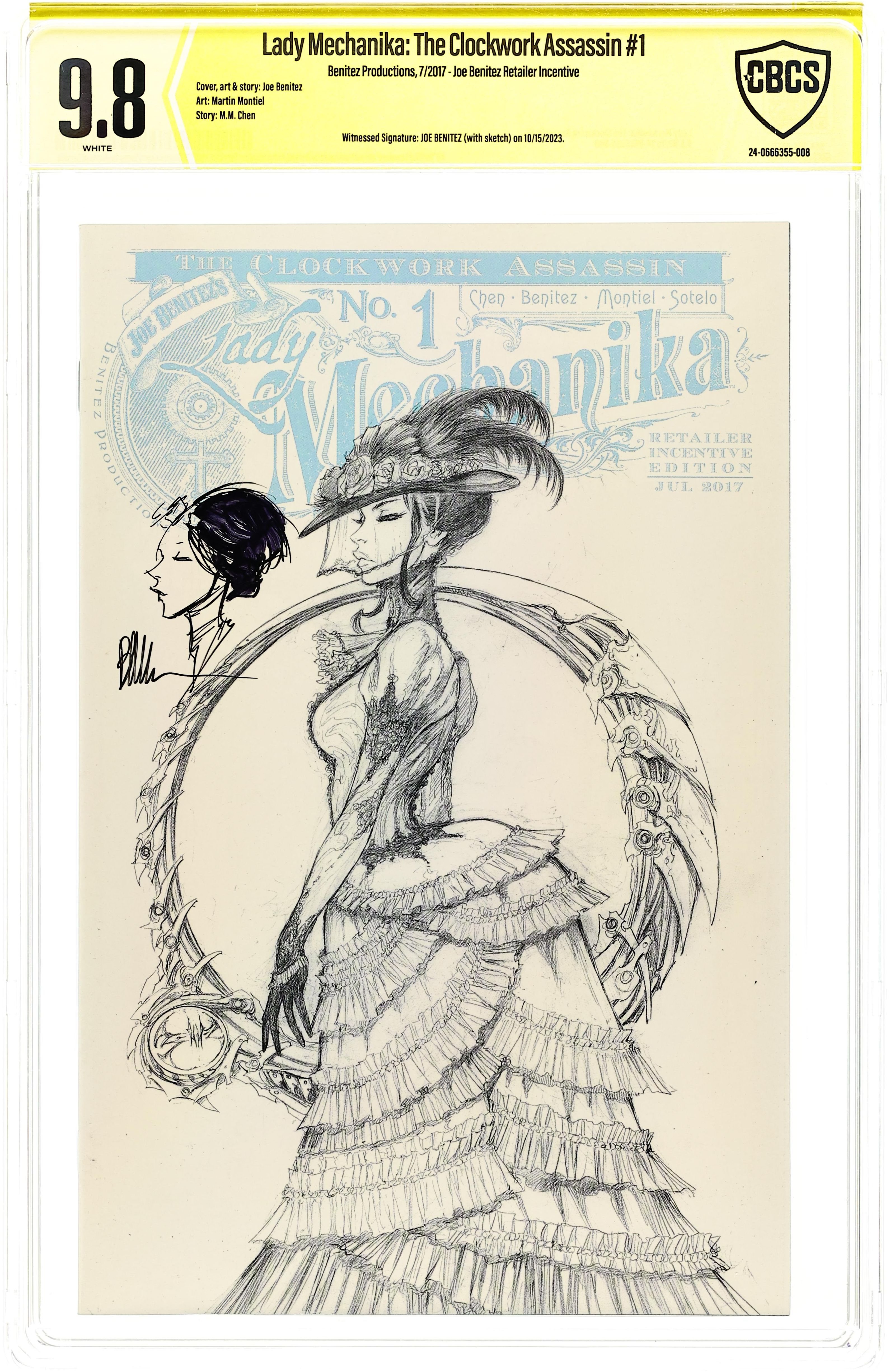 Limited 1 for 10 Retailer Incentive Variant Cover. Written by M. M. Chen. Art by Joe Benitez, Martin Montiel and Mike Garcia. Cover by Joe Benitez and Martin Montiel. Lady Mechanika and Winifred travel deep into the heart of the Congo Jungle in their continued search for Winifred's missing grandfather, but discover that they were not the sole survivors of the airship explosion which left them stranded in the African desert. 28 pages, full color. Cover price $3.99.