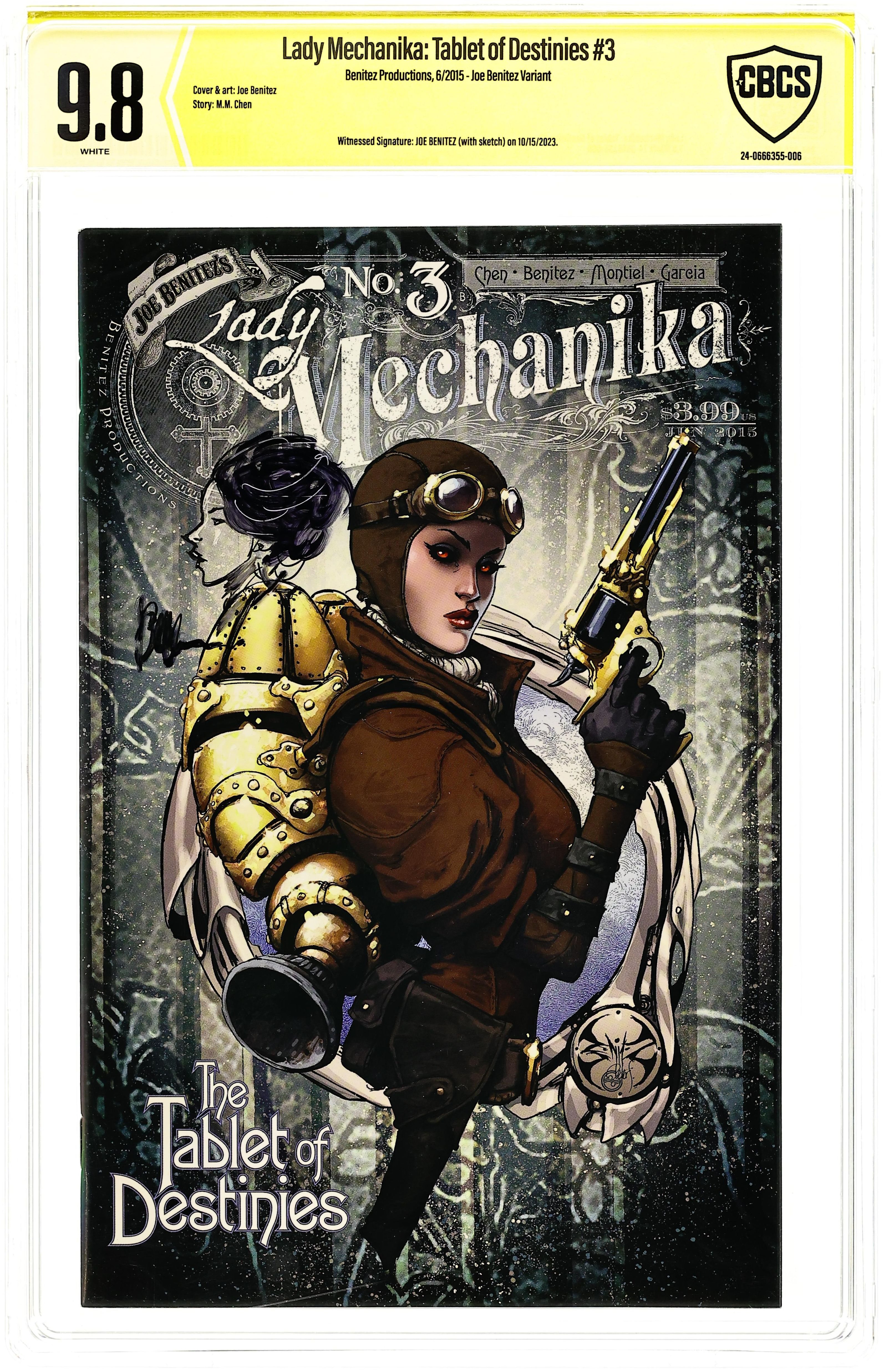 Written by M. M. Chen. Art by Joe Benitez and Martin Montiel. Cover by Joe Benitez and Peter Steigerwald. Lady Mechanika journeys to the Continent on rumors that young Winifred was taken to the German countryside and imprisoned in a remote castle. But is the source of these rumors a friend or foe? And what is his true interest in the Tablet of Destinies? 32 pages, full color. Cover price $3.99.